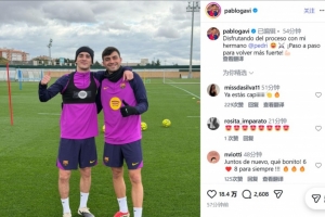 体育资讯2月4日讯 不久前,巴萨中场加维更新社交媒体,晒出了与佩德里一起进行恢复性训练的合照。