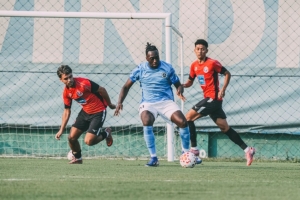 本场比赛为上下半场各45分钟。比赛过程中,球队重点围绕阵容磨合与技战术演练展开。上半场对手取得进球。下半场,田逸梵在禁区外完成断球后直接起脚攻门,皮球击中立柱。比赛尾声阶段,田逸梵下底传中,阿代米错失良机,遗憾未能改写比分。最终,深圳新鹏城以0比1结束本场热身赛。